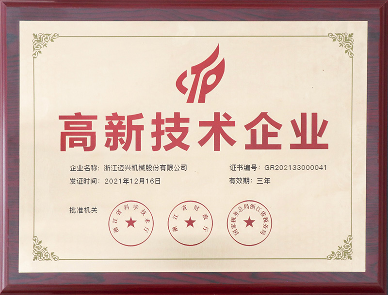 邁興通過了多種國際體系認證、獲得了多份國家榮譽證書